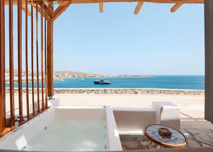 Η Horizon 4 You προσφέρει παραθαλάσσιο κατάλυμα στην πόλη Mykonos Town, το οποίο διαθέτει τζακούζι. Μικρή Βενετία είναι σε απόσταση 10 λεπτών οδικώς και Ματογιάννη απέχει 15 λεπτά οδικώς.